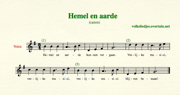 Lyrics 'Hemel en aarde' on Dutch website: Canons met muziek.