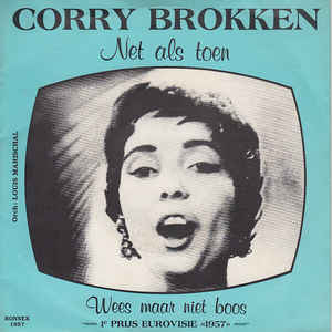 Corry Brokken (1932-2016) was a Dutch singer and radio and tv host, but also had a career as lawyer and later judge. She was the first Dutch artist that won the Eurovision Song Contest (in 1957), with above song 'Like those days'/'Net als toen'.
