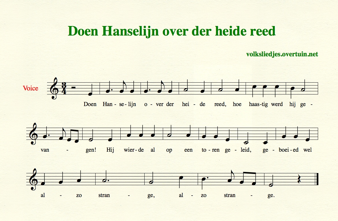 Verhalend lied, liefdeslied. De beginzin wordt ook gespeld als: 'Doen Hanselijn'.